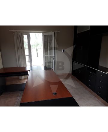 Propiedad en el paso, ubicada sobre el boulevard principal a 200m de la entrada, en orientación cruzada sur- norte. Se emplaza sobre dos lotes, lo que permite un amplio parquizado. La construcción se compone de dos plantas: En planta baja, living con chimenea, comedor , cocina sectorizada con barra desayunadora y todo el amoblamiento correspondiente, tres baños. Tres dormitorios, el principal con baño en suite y vestidor. En la planta alta una habitación con finalidad de escritorio o 4to. dormitorio equipado con todo el amoblamiento, con una salida a la terraza, en contrafrente, que permite una visión al campo de golf (hoyos 8 y 9) y otra salida a un patio cerrado con blidex con espectacular vista hacia el frente. Cabe destacar que toda la propiedad cuenta con varios espacios amueblados de guardado. En el exterior, Cochera pasante, galerías espaciosas, una de ellas con asador, mesada y baño. Gran patio parquizado, en el que se encuentra una piscina de 12 x 3.50 m con solarium. Construcción de 2003, sólida y de calidad con excelentes terminaciones y detalles. Posee aires acondicionados y calefactores.