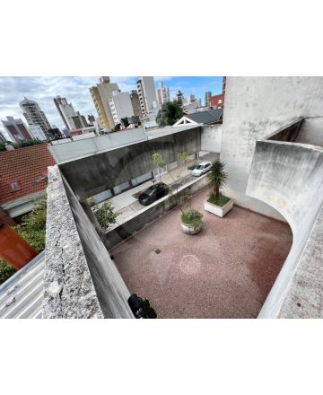 Casa de diseño antigua en microcentro santafesino. La misma se emplaza en un lote de 16 metros de frente por 16 metros de fondo. Compuesta de 3/4 Dormitorios, 4 Baños, Cocheras cubiertas, Patio y Terraza. Se distribuye en 4 Niveles: Nivel 1: Plaza de Cocheras Cubiertas. Nivel 2: Encontramos toda la parte social del inmueble que consta de amplio estar comedor con balcones interiores, y cerramientos vidriados de pared a techo, cocina, comedor diario, Lavadero y Baño. Tanto en el frente como en el contra-frente esta planta posee amplios patios. Nivel 3: Parte privada. 3 amplios dormitorios con placar y 2 Baños Nivel 4: Gran Terraza con cuarto de dependencia. Tanto en el frente como en el contra-frente, los Niveles 1 y 2 poseen amplios patios secos y verdes que son excelentes espacios recreativos. La superficie total cubierta es de casi 700m2 cubiertos, lo cual proporciona un espacio ideal para uso comercial y/o para una gran vivienda multifamiliar.